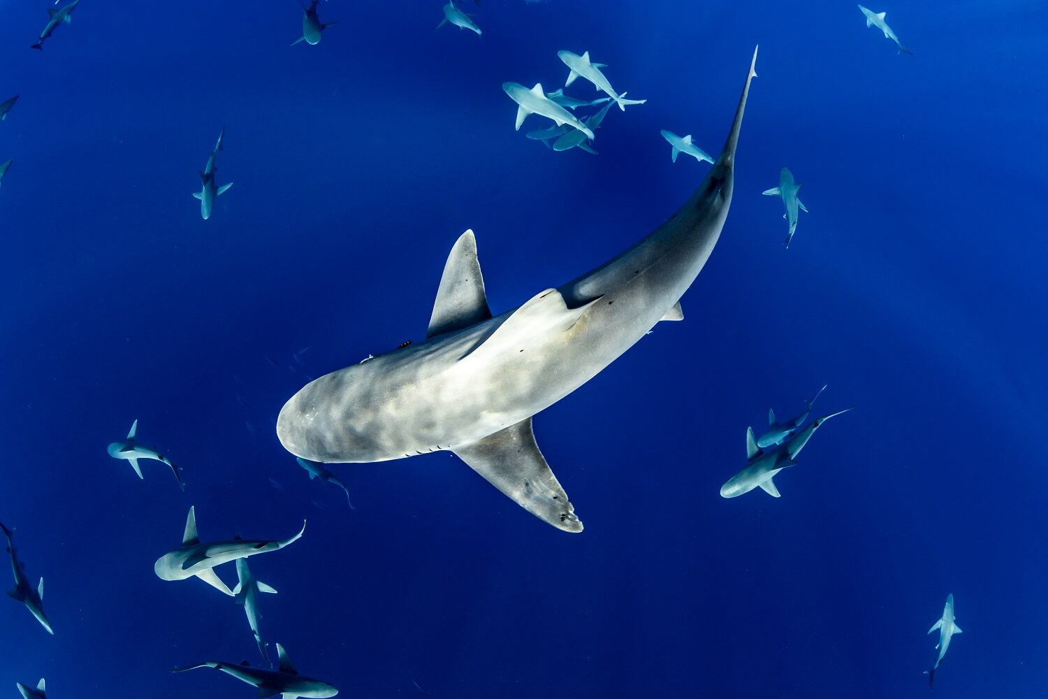 hammerheads (Sphyrna zygaena), great hammerheads (Sphyrna mokarran) and silky sharks (Carcharhinus falciformis).