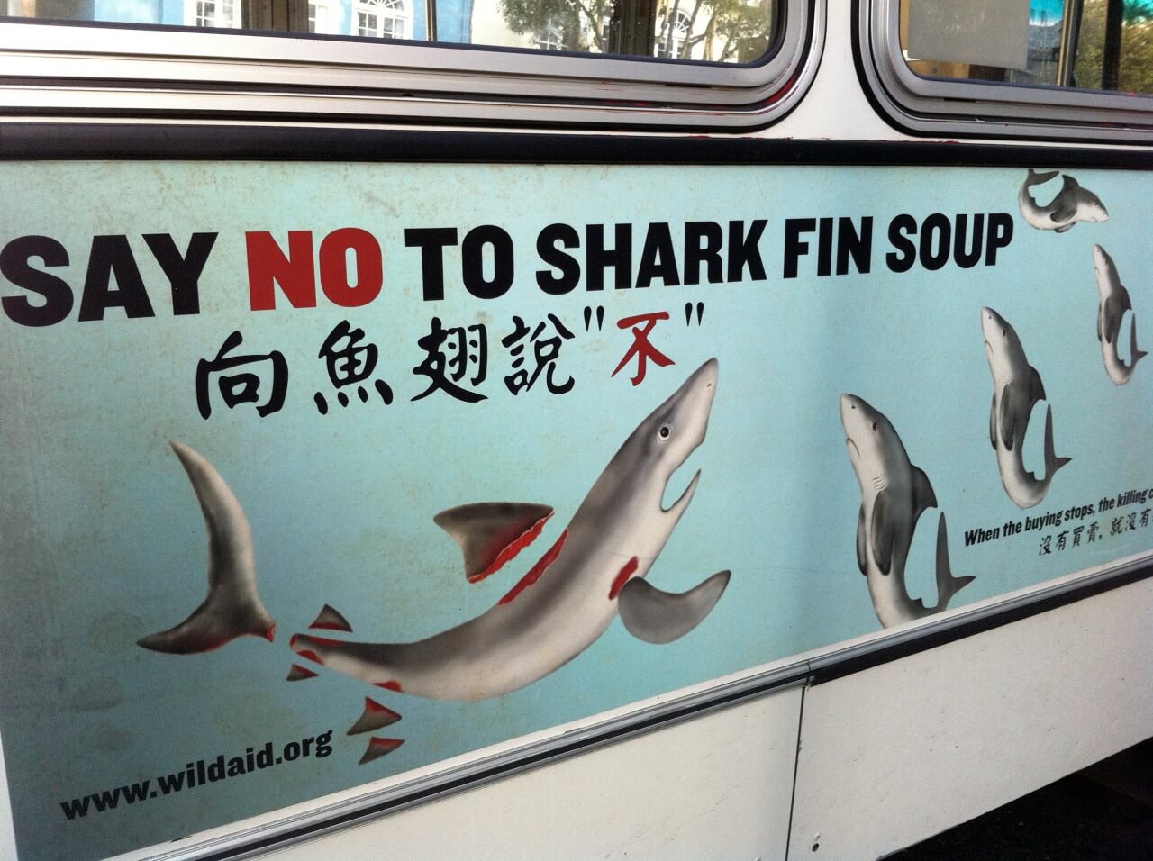 A bus poster raising awareness about shark finning. | Frank Hebbert / Flickr