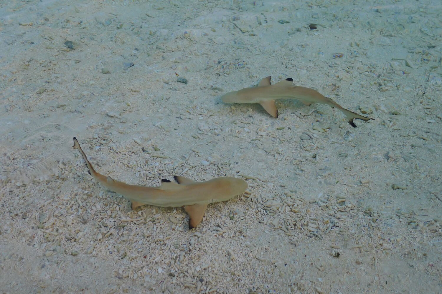 Two shark pups by the beach at Angsana Velavaru, Maldives. | Timo Netwon-Syms / Flickr
