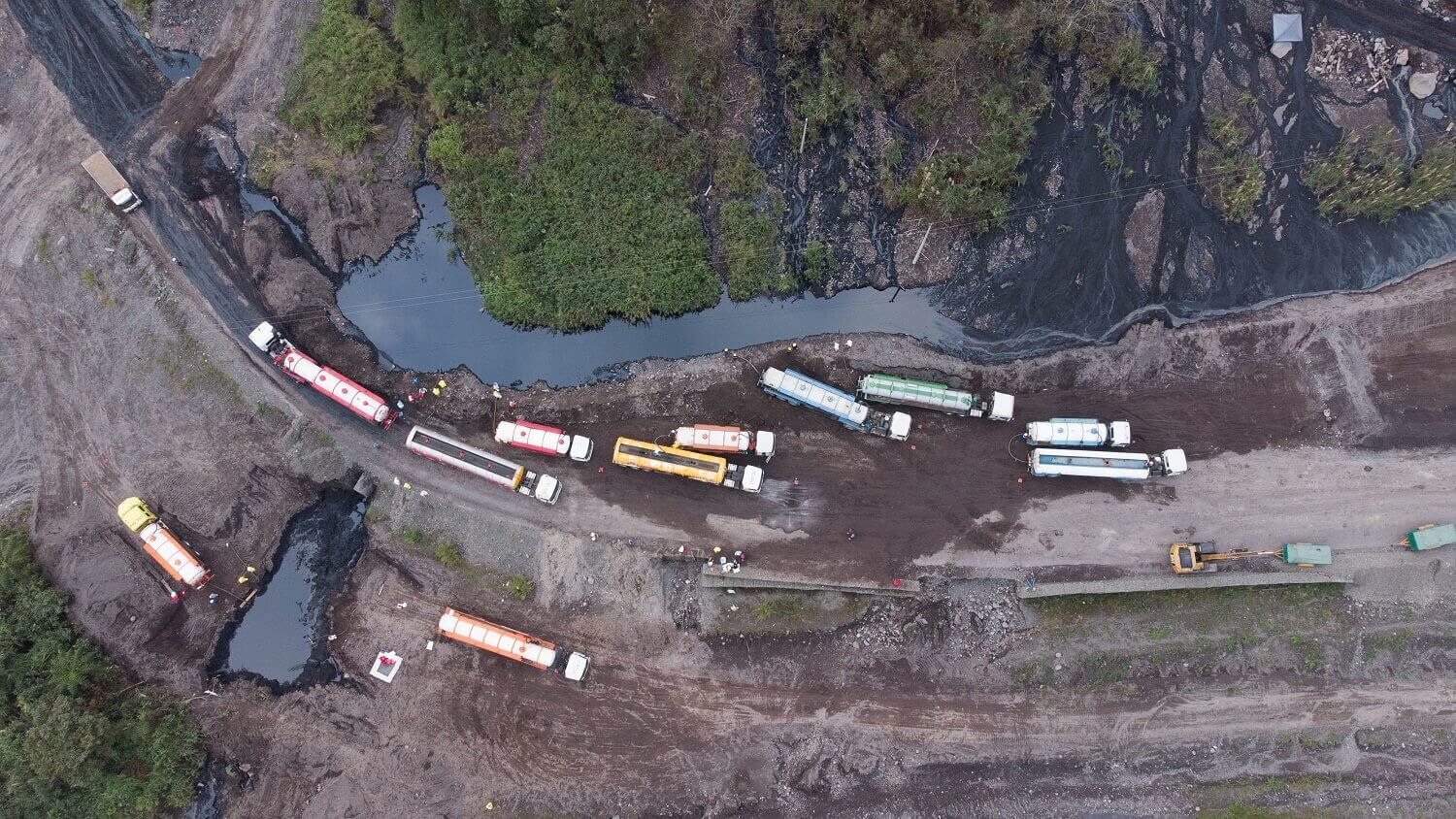 Aerial view of the extent of the most recent oil spill near the Cayambe-Coca National Park in January 2022. | Ivan Castaneira / @i_chido