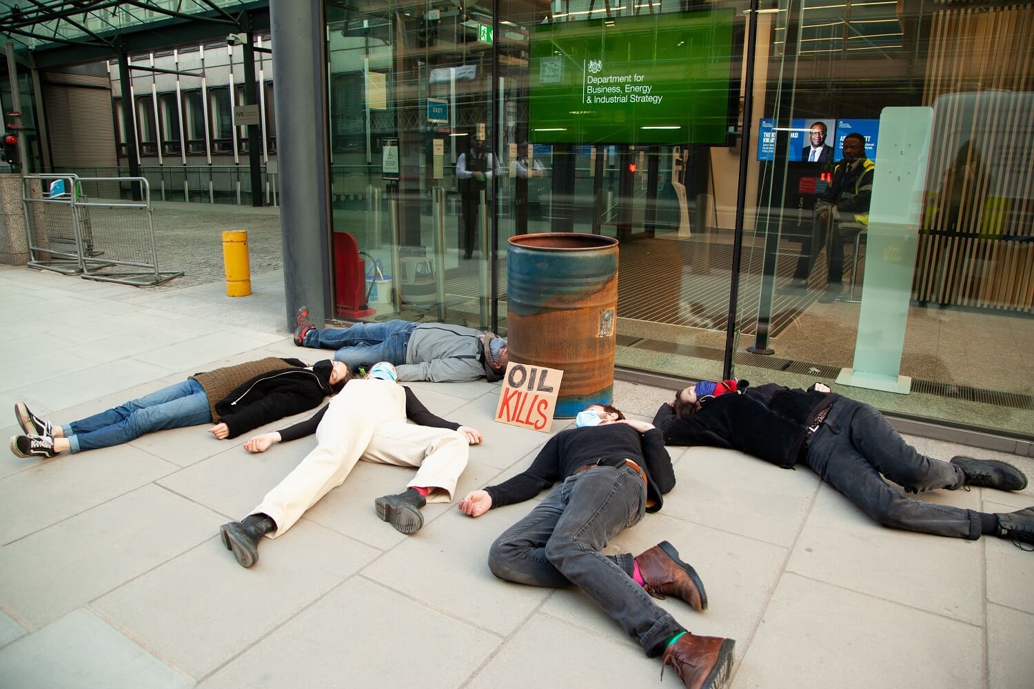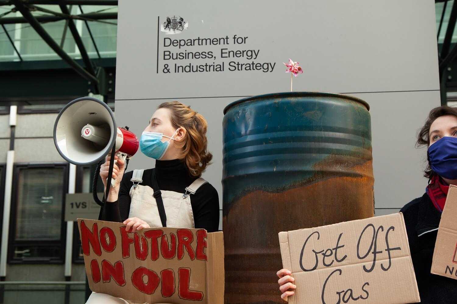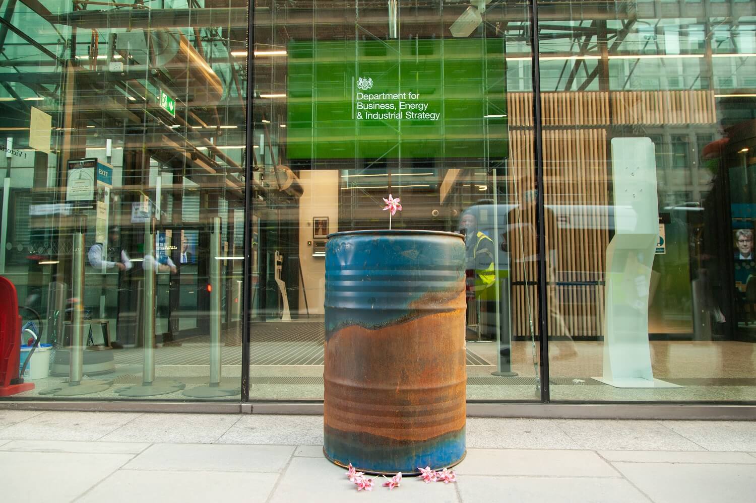 On March 20th 2022, climate campaigners from Fossil Free London protested outside the Department for Business, Energy and Industrial Strategy (BEIS) against the continued expansion of oil and gas. To illustrate the issue, activists used a